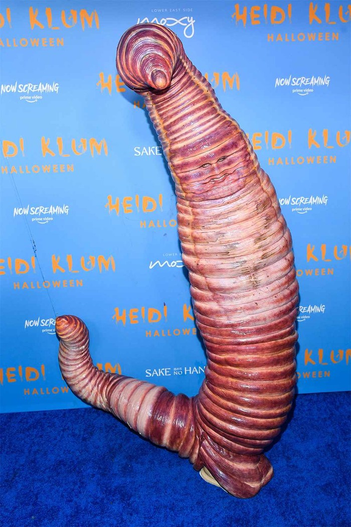 Kostum bentuk cacing yang dikenakan Heidi Klum pada tahun 2022 juga mengundang antusias publik. Mantan istri penyanyi Seal ini benar-benar menjelma menjadi hewan melata dengan bagian kepala yang melengkung lengkap dengan ekor panjang.Â
