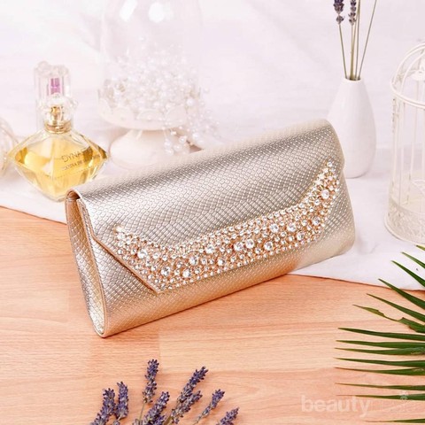 Clutch merupakan tas kecil yang menyerupai dompet yang bisa digenggam maupun dijinjing. Clutch memang menjadi pilihan yang tepat saat akan pergi ke kondangan. Bagi kamu yang ingin tampilan kamu terlihat lebih glamor bisa memilih tas dengan model seperti clutch berwarna gold ini dengan detail diamante yang berkilau yang akan menjadi signature penampilan kamu. Tas ini juga dilengkapi dengan rantai kecil sehingga bisa kamu selendangkan saat kamu malas untuk menjinjingnya.