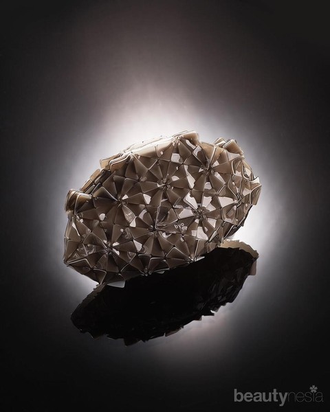 Bagi kamu yang ingin tampilan modern bisa mencoba clutch bags dengan desain futuristik seperti ini selain modern juga memberikan kesan yang artistik. Clutch bag yang terbuat dari bahan PVC dan latex dengan desain floral geometris akan membuat penampilan kamu terlihat lebih cantik. Kesan elegan juga bisa kamu dapatkan saat menjinjing tas ini. Tas yang dilengkapi dengan magnet pada mulut tas semakin membuat kamu praktis saat pergi ke kondangan.