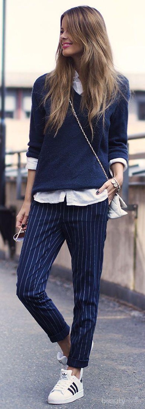 Untuk mendapatkan look yang rapi, coba padu padan celana dan sneakers menggunakan celana bahan. Selain itu, coba tambahkan pula kemeja untuk menambah kesan formal. Tampilan ini bisa kamu gunakan untuk ke kantor saat harimu sedang hectic karena gaya ini memberikan kenyamanan untuk aktivitasmu yang super padat.