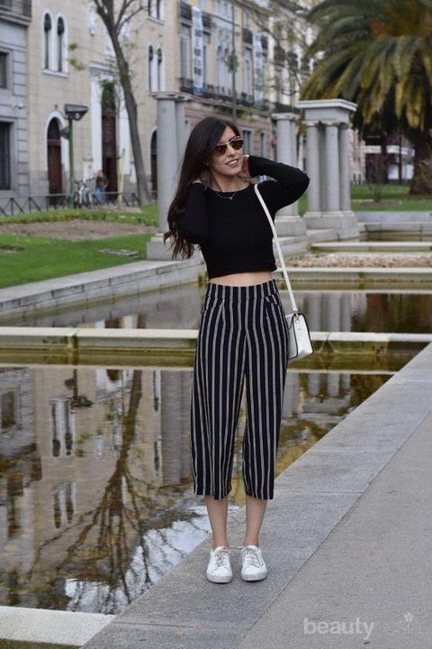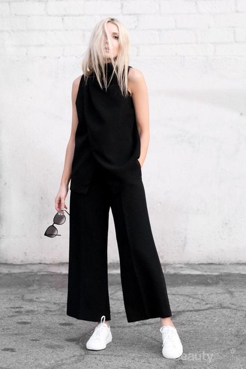 Salah satu cara padu padan celana dengan sneakers adalah dengan menggunakan kulot. Celana yang sedang tren belakangan ini memang bisa memberikan kenyamanan saat dipakai. Kulot juga bisa bikin kamu terlihat lebih stylish, lho. Kamu bisa banget menggunakan look ini untuk keseharian atau untuk ke kampus.