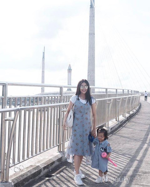 Menjadi ibu bukan berarti kamu harus selalu berpakaian dengan daster lho ya. Hal ini dibuktikan oleh istri dari Ruben Onsu, Sarwendah. Wendah membuktikan bahwa ia masih bisa bergaya modis kasual dengan padanan kaos putih dan floral dress ini. Ditambah lagi, gaya kasual anaknya, Talitha Onsu, yang mengenakan shirt dress dengan model cold shoulder dengan warna senada. Kompak dan lucu ya pasangan ibu-anak ini?