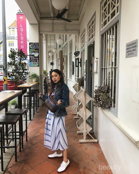 Siapa bilang saat travelling kamu tidak bisa tampil stylish? Kamu bisa mencoba beberapa inspirasi tampilan dari Ayla Dimitri ini. Coba deh kenakan rok ataupun celana dengan motif assymetrical stripes. Motif ini membuat tampilan kamu berbeda dan mencuri perhatian karena efek asimetris dari motif tersebut. Kamu bisa pilih motif garis yang memiliki ukuran sedang maupun besar. Beautynesian dapat memadukannya dengan basic tops seperti kemeja ataupun basic tees. Jangan lupa pula mengenakan sepatu yang nyaman, seperti loafer ataupun sneakers. Coba gunakan warna alas kaki yang senada dengan warna atasan kamu sehingga memberikan aksen dalam tampilan kamu.