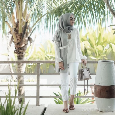 Two tone blouse berwarna abu-abu putih ini memang paling khas dari style casual hijab dari Nabila Hatifa. Hijabers cantik yang juga merupakan seorang entrepreneur ini sangat identik dengan gaya santai casual yang elegan. Tidak heran padu padan warna putih dan abu-abu dalam tampilannya membuat Nabila semakin terlihat cantik. Cocok banget dipakai untuk hangout atau bahkan menghadiri acara semi formal.