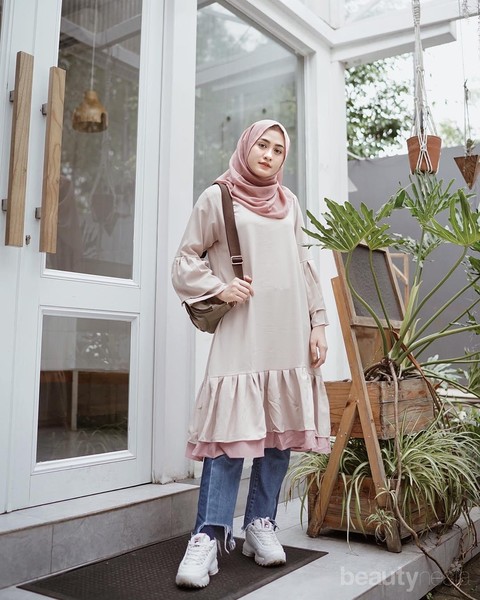 Nah, kalau Amy belakangan ini terlihat sering menggunakan tunik dalam tampilan casual hijabnya. Padu padan tunik berdetail ruffle ini memang manis banget untuk dikenakan pada beragam daily activity kamu. Tidak hanya itu, perpaduannya dengan jeans dan platform sneakers membuat Amy terkesan semakin fashionable dan kekinian. Cantik, ya!