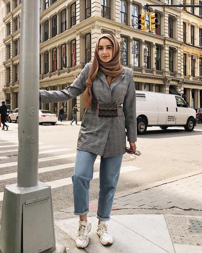 Summer Albarcha paling dikenal dengan gaya layering yang merupakan padu-padan pakaian berlapis yang bisa ditandai dari pemakaian outer. Salah satu outer yang tidak absen dari lemari pakaiannya, tentu saja plaid blazer yang chic. Kalau kamu pikir blazer yang cenderung berkesan formal baiknya dipakai bersama heels saja, kini saatnya ubah mindset. Albarcha memakai sneakers putih untuk menyempurnakan semi-formal look-nya. Kamu bisa sontek gaya ini untuk ouftit kantor atau bertemu klien.