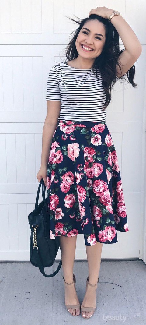 Siapa bilang motif garis-garis tidak dapat dipadukan dengan motif lain? Tentu saja bisa! Kamu bisa mengenakan motif floral, ataupun polkadot! Salah satu tips fashion untuk menggabungkan kedua motif ini adalah dengan memilih motif garis yang berukuran kecil sehingga fokus pada tampilan kamu tidak membingungkan. atau sebaliknya, kamu bisa memilih motif floral atau polkadot dengan ukuran tidak terlalu besar. Hal ini akan membuat tampilan kamu lebih berwarna dan juga cerah, lho! Kamu bisa mengenakan perpaduan ini untuk ke berbagai situasi; untuk ke kampus dan tampilan sehari-hari dan untuk tampilan formal.