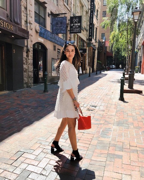 Foto: https://www.pinterest.com/Pada foto ini, Luna mengenakan white ruffle short dress dengan menggunakan heels boots dan kacamata hitamnya. Gayanya simple banget, namun Luna terlihat seperti street model yang sedang catwalk kan ladies. Untuk terlihat classy nyatanya nggak perlu ribet, seperti Luna di foto ini. Bisa banget dicoba nih, style yang satu ini.