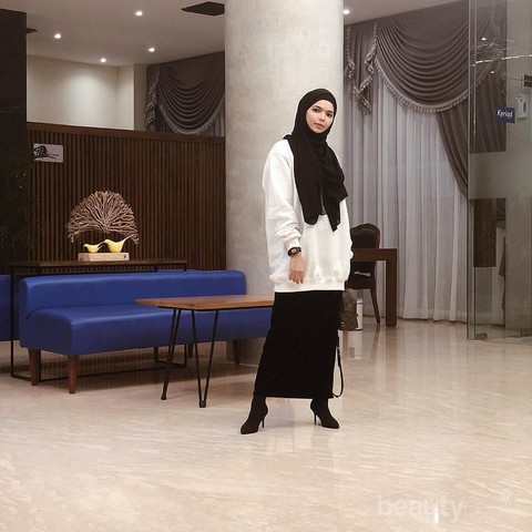 Foto: https://www.instagram.com/vivizubedi/Pilih Gamis Bernuansa Monochrome