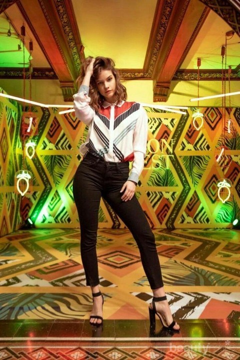 Foto: IstimewaAgar kemeja yang kamu gunakan tidak terlalu formal maka kamu bisa memilih kemeja dengan gaya pop art seperti yang dipakai Barbara. Padukan dengan skinny jeans berwarna hitam agar lebih netral.