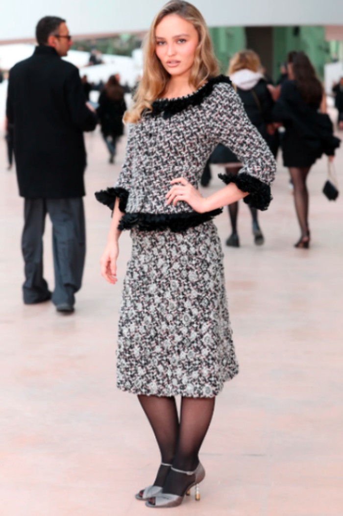 Lily-Rose Depp datang ke Paris Couture Week dengan aura French It-Girl yang tidak terbantahkan. Dalam balutan Chanel tweed klasik dengan detail ruffle hitam yang memberi sentuhan ekstra elegan, dia terlihat seperti modern-day muse dari rumah mode legendaris ini.