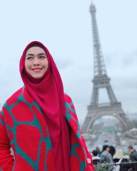 Sebagai bervariasi dalam berhijab, kamu bisa mencoba gaya Oki Setiana Dewi ini. Ia nampak memakai jilbab syar’i dengan memberi aksen tumpuk. Jika mengenakan jilbab dengan cara tumpuk ini, kamu juga harus memilih jilbab polos agar penampilanmu enggak terlalu berlebihan. Meski polos, jilbab syar i modis model ini tetap bisa digunakan untuk acara formal dengan pemilihan warna yang sesuai.