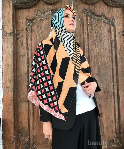 Selain pashmina dan hijab instan, kamu masih bisa berpenampilan syar’i dengan jilbab segi empat. Seperti yang Mulan Jameela perlihatkan ini. Sekarang sudah banyak jilbab segi empat berukuran lebar sehingga tetap lebar dan menutup dada saat dikenakan. Pilihan warna dan motif beragam juga menambah kesan ceria.