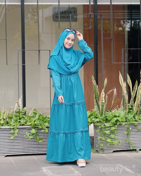 Agar mengenakan jilbab syar’i tetap terkesan segar dan muda, kamu bisa memilih hijab seperti yang Alyssa Soebandono kenakan ini. Jilbab yang terlihat merupakan hijab instan tinggal pakai yang dibentuk dengan dua lapis warna kain yang berbeda. Kombinasi warnanya juga memberi kesan lembut dan girly.
