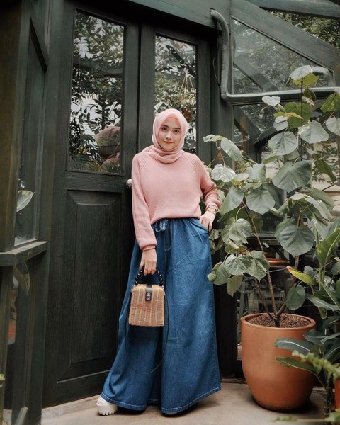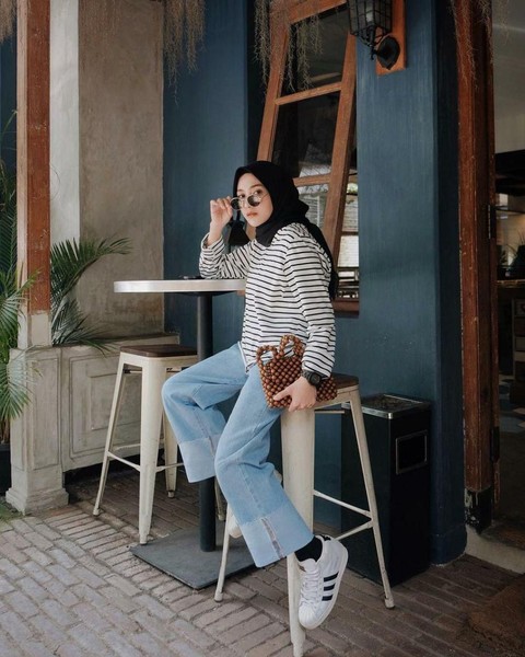 Kulot memang banyak disukai karena selain bahannya adem, juga memudahkan kita untuk bergerak. Lihat hijab style Nisa kali ini, terlihat chic dan simpel sekali bukan? Tak perlu repot repot memadankan, kamu bisa memadankannya dengan kaos rajut, kaos panjang, dan pilihan santai lainnya. Untuk sepatu kamu bisa menggunakan sneakers, sepatu sport, atau wedges.