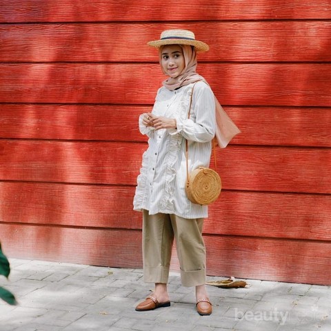 Selebgram asal Malang, Yulia Juliyanti pun tidak mau ketinggalan dengan memakai tas rotan bulat ini untuk tampilannya. Dengan tas rotan ini, Yulia tampil cantik dengan padu padan atasan putih dan celana coklat serta topi rotan yang membuat tampilannya semakin chic tapi tetap simple. Inspirasi dari Yulia Wijayanti bisa kamu ikuti untuk kamu yang memakai hijab loh.