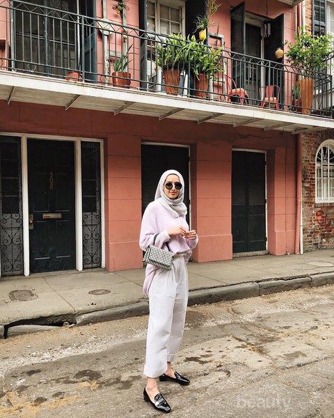 Hijabers yang tinggal di luar negeri, terutama di benua Amerika dan Eropa, harus menghadapi cuaca dingin. Makanya, gak heran jika mereka sering terlihat memakai pakaian yang berlapis-lapis yang terkesan berat namun tetap stylish. Nah, jika kamu mencari style hijab santai atau hijab casual, salah satu style hijab ini bisa kamu tiru. Sweater dengan detail tali silang di bagian depan yang dipadukan dengan