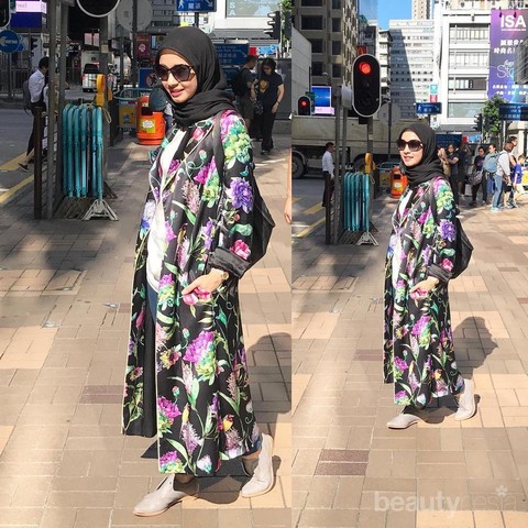 Saat berkunjung ke Hong Kong, Laudya Cinthya Bella memilih berjalan-jalan menikmati kota dengan floral long outer yang sangat cantik dan memadukannya dengan skinny jeans serta sling back. Penampilannya yang sederhana, kasual dan simple ini bisa banget kamu tiru, ladies! Gaya hijab traveling ini cocok apabila kamu berkunjung ke tempat atau negara yang memiliki musim dan cuaca yang mirip dengan Indonesia!