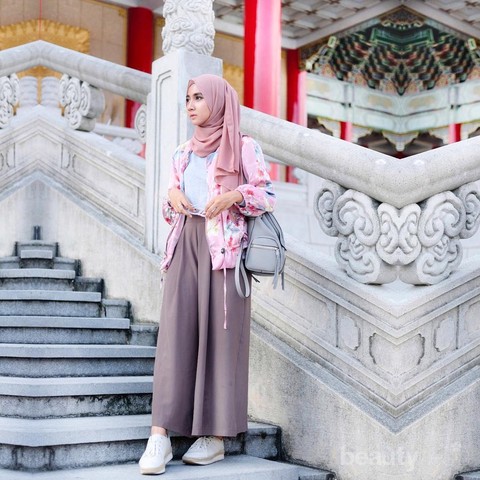 Fashion item yang bisa melengkapi padu padan warna hijab pastel adalah kulot + white sneakers. Kekinian banget kan? Kamu bisa memilih gaya hijab segiempat atau dengan pashmina. Ingin terlihat santai nan kasual, tambahkan backpack dengan warna sepadan seperti abu-abu. So chic ya!