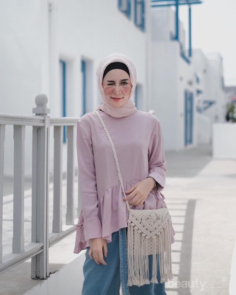 Ingin tampilan dengan hijab pastel yang lebih stylish dan kekinian? Padukan dengan kacamata yang akan membuat penampilanmu makin chic. Blus dengan model simple seperti ini juga membuat style kamu terlihat remaja banget. Fashion item yang bisa menemani hijab pastel kamu adalah tas rajut dengan warna putih. Outfit yang dominan sepi menjadi stand out dengan tas ini. Menarik kan?