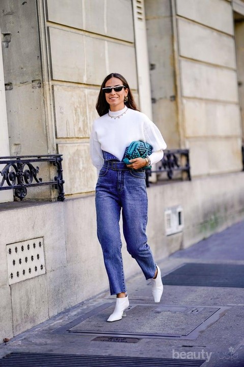 Jeans yang dipadukan dengan atasan berwarna putih memang gak salah banget deh ladies. Lihat aja inspirasi gaya musim panas ini. Dengan memadukan jeans dan puff-sleeve top berwarna putih dijamin deh penampilan kamu jadi super kece.