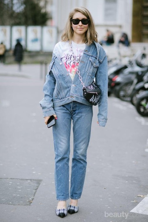 Memadukan celana jeans wanita dengan jaket jeans bukan sesuatu yang aneh lho ladies. Liat aja inspirasi gaya yang satu ini. Dengan denim on denim, penampilanmu justru akan semakin menarik perhatian.