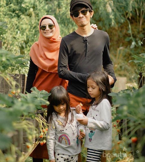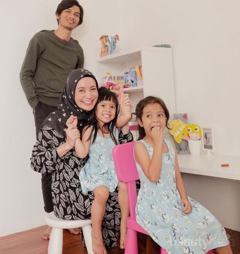 Foto: IstimewaJika sebelumnya hanya terlihat Tria dan dua putrinya, maka kali ini giliran sang istri yang menghabiskan waktu bersama dua anaknya. Dua putri Tria terlihat manis mengenakan gaun dengan detail rok tule lebar selutut. Mereka juga kompak mengenakan stocking putih. Sementara Dhatu tampil chic dengan perpaduan shirt tunik berbahan jeans dengan celana yang berwarna sama dengan jilbab yang dikenakan.