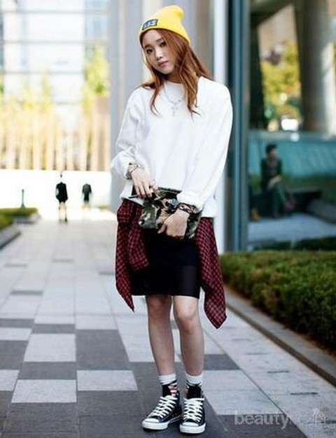 Jaket sweater atau kemeja di sini dikatakan sebagai aksesoris karena memang perannya tidak digunakan sebagaimana mestinya. Kamu bisa mengikatkan jaket, sweater atau kemeja pada pinggang untuk menutupi mini skirt. Selain itu, hal ini bisa menjadi style yang unik kan?