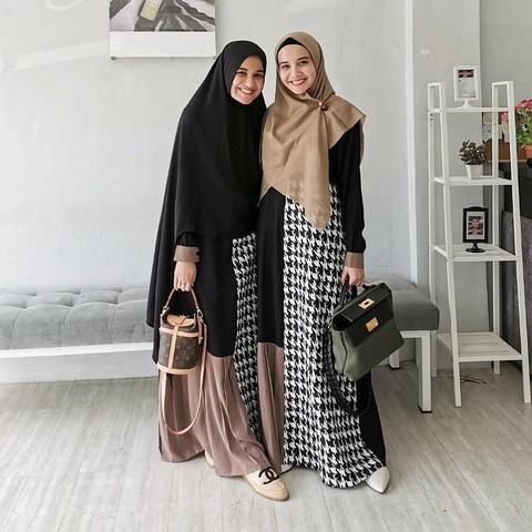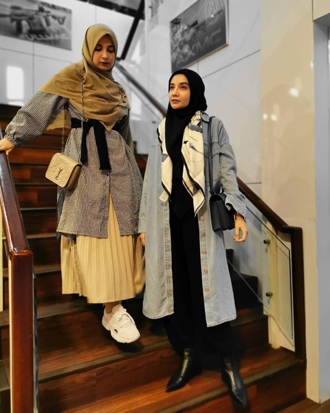 Gaya berpakaian keduanya memang sangat berbeda, namun tetap terlihat kompak dengan adanya nuansa hitam dan coklat pada busana yang dipakainya. Shireen selalu tampak elegan dengan busana dress hitam serta hijab coklatnya. Berbeda dengan Shireen, justru Zaskia memakai hijab hitam dan menambahkan outer coklat yang senada dengan hijaab milik Shireen. Bagaimana beautynesian, kompak banget kan?