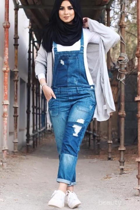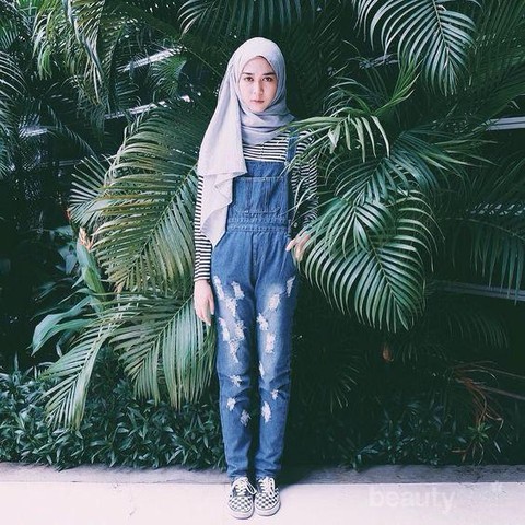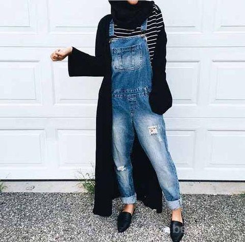 Jangan salah ladies, fashion item yang bermodel ripped bukanlah hanya celana jeans tapi juga bisa diaplikasikan ke fashion item bernama overall. Padukan ripped overall dengan striped shirt akan semakin meningkatkan kesan santai pada tampilan mu. Perpaduan ini bisa dijadikan salah satu hijabers style dengan menambahkan hijab berwarna hitam atau yang memiliki warna senada.