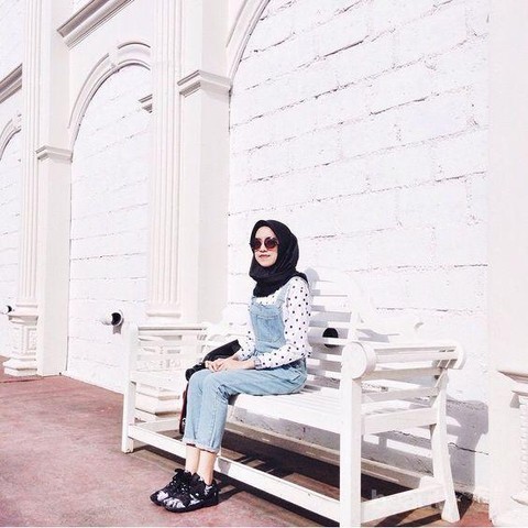 Bagi kamu hijabers Indonesia yang ingin tampil sedikit retro, padukan kemeja atau kaos yang memiliki motif polkadot dengan overall jeans favorite kamu agar tampilan kamu memiliki kesan retro. Gunakan hijab yang memiliki warna senada atau yang berwarna hitam agar tidak menjadi terlalu banyak warna dalam gaya kamu.