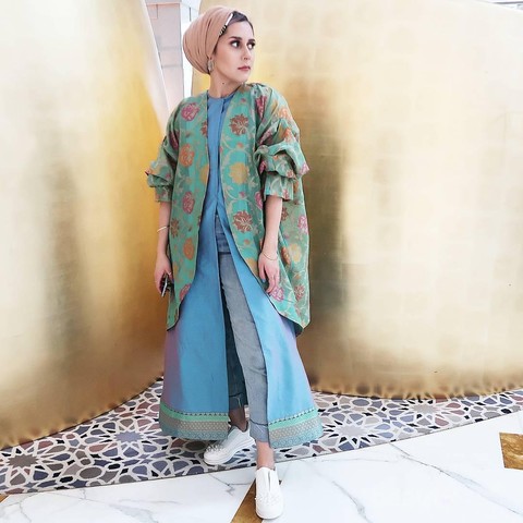 Kamu bisa juga menggunakan monokrom outfit dengan motif pada keseluruhan tampilan kamu. Beautynesian bisa memilih pattern dengan ukuran yang agak besar sehingga bisa cover all your outfit. Coba pilih motif dengan spektrum warna yang masih senada. Kamu bisa mengenakan outer yang memiliki motif penuh. Kemudian Beautynesian dapat memadukannya dengan kaus ataupun tank top dengan warna senada. Jangan lupakan warna hijab kamu, ya! Oiya, untuk kamu yang ingin tampil berbeda dari biasanya, coba deh model hijab turban agar tampilan kamu berbeda dari yang lain.
