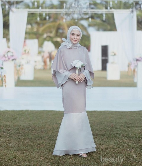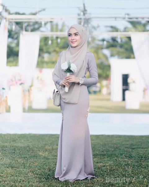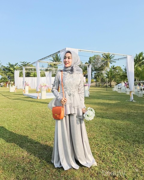 Pengusaha muda yang baru saja melangsung pernikahan ini terlihat sangat cantik saat menghadiri acara pernikahan sahabatnya yang juga selebgram, Joyagh. Ibu satu orang anak ini tampil cantik dengan model rempel pada bagian bawah gaunnya. Gaya ini cocok banget untuk kamu si pemilik tubuh mungil hijabers.