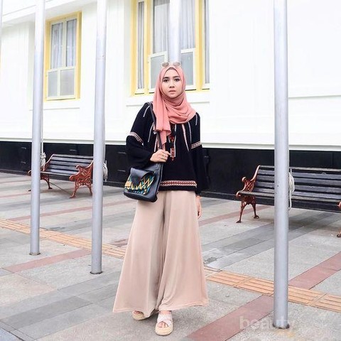 Tampil Kekinian dengan Mix and Match Celana Palazzo Hijab Ala Selebgram Yuk!