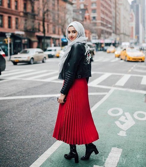 Walaupun terkesan metal dan gothic, memadukan hijab dengan leather jacket adalah perpaduan yang wajib kamu coba. Ya, cobalah sesekali keluar dari zona nyaman. Tak perlu bingung memadu padankannya karena sudah banyak influencer yang memberikan inspirasi fashion style dengan leather jacket.