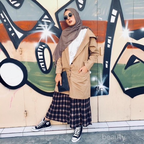 Nah, kalau kamu kurang suka menggunakan celana, mungkin fashion hijab ala Bella atau yang dikenal dengan akun instagramnya @bellattamimi ini, kamu bisa menggunakan rok sebagai bawahanmu.