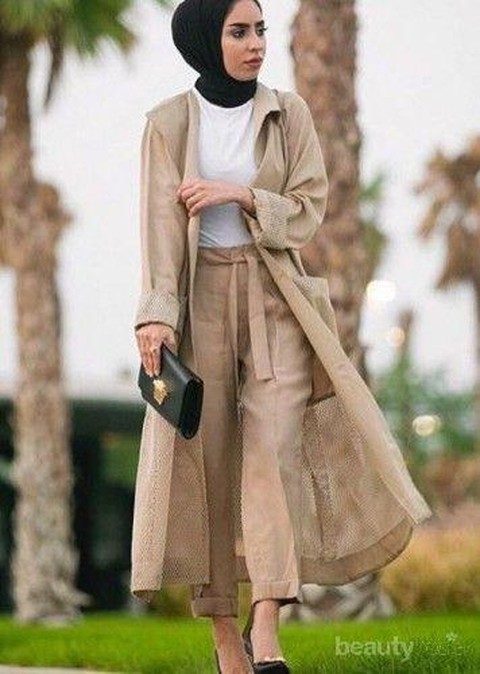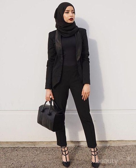 Blazer memang menjadi salah satu item fashion yang wajib dimiliki oleh para wanita yang bekerja di kantoran. Blazer akan membuat penampilanmu terlihat rapi dan sopan. Nah, kamu bisa banget lho hijabers mencontek gaya yang satu ini. Gunakan heels atau wedges serta hand bag untuk menyempurnakan penampilanmu.