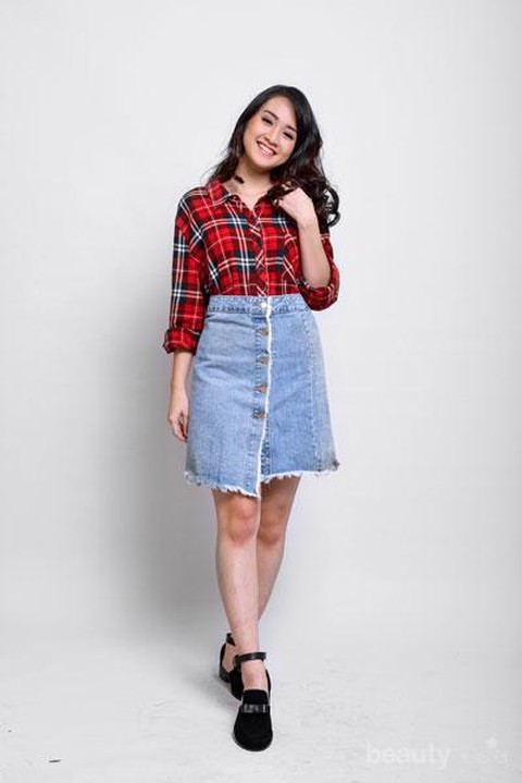 Tampilan chic dengan mengenakan mix and match rok denim dengan baju kemeja kotak-kotak bisa jadi inspirasi kamu selanjutnya ladies. Simple namun tetap fashionable menggambarkan padu padan pakaian wanita ini. Pemilihan warna denim biru muda ini sekilas memang sangat old school, namun disitulah keunikan dari tips pakaian ini. Nah, kamu sendiri bisa mengenakan padu padan ini untuk pergi kuliah lho.