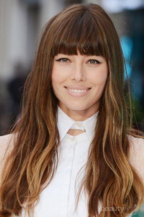 Inspirasi cat rambut warna cokelat selanjutnya menitikberatkan highlight warna cokelat terang cenderung pirang pada bagian bawah sementara pada bagian atas diberi sapuan tipis warna cokelat gelap. Teknik blonde yang booming ini mewarnai hampir gaya rambut cokelat. Model poni rata memakismalkan gaya musim panasmu.