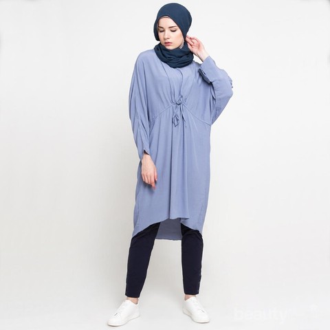 Selain dalam bentuk kancing, fashion hijab untuk Ibu menyusui adalah dengan zipper permbuka atau resleting di bagian depan blouse. Resleting kecil yang transparan dan samar dengan warna baju tidak akan mengganggu penampilan. Kombinasi blouse ini akan lebih cantik jika ditambahkan detail belt di bagian tengah blouse. Belt ini bukan hanya sebagai pemanis penampilan, namun juga menjaga agar blouse tetap rapi dan aman.