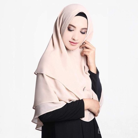 Foto: https://www.pinterest.ru/pin/457396905898329775/Contohnya, ladies bisa mengenakan jenis round shawl maupn jilbab sosor yang sudah dilengkapi dengan scarf panjang sehingga dari segi model bisa disesuaikan dengan acara. Selain itu, agar tidak terkesan terlalu santai, maka ladies bisa menggunakan scarf yang panjang di bagain atas khimar.
