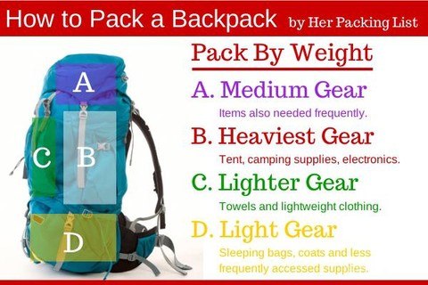 Tanpa disangka, meskipun berat keseluruhan tidak berubah, namun penempatan barang yang salah dapat membuat ransel jadi kurang nyaman. Saat packing ransel, pertimbangkan faktor bobot dan prioritas barang sebelum menatanya dalam tas. Sesuai gambar, benda yang paling berat sebaiknya ditempatkan paling dekat dengan punggung, misalnya laptop atau makanan bekal untuk berkemah. Selain itu, benda-benda yang memiliki prioritas tinggi seperti jaket atau obat-obatan harus berada di tempat teratas agar mudah diraih.