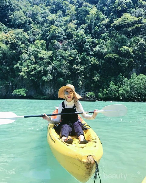 Saudara kandung dari Saira Mirror yang satu ini juga memiliki outfit tersendiri untuk gaya liburannya saat bermain di pantai. Ia menggunakan overall denim panjang yang dipadukan dengan kaos. Agar terlihat lebih simpel dan ringkas, ia memilih hijab model semi turban yang kasual tetapi terkesan elegan. Cantik, ya!