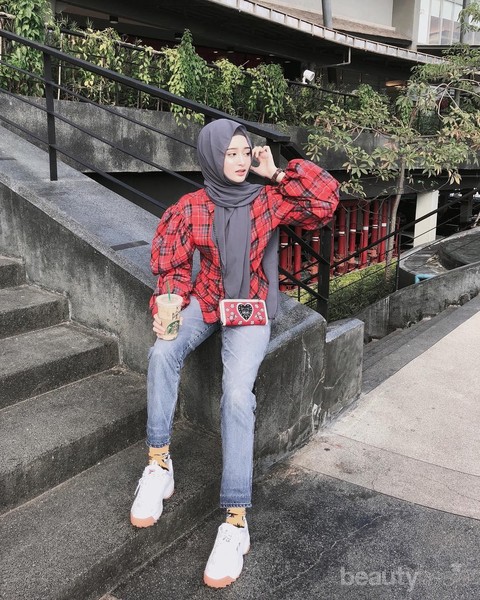 Si cantik Saira Mirror memang cukup populer di kalangan para hijabers. Ia sering tampil dengan outfit hijab yang modis dan stylish dengan beragam model dan jenis fashion item yang juga sedang populer. Salah satunya adalah tampilan casualnya dengan menggunakan kemeja kotak-kotak satu ini. Meskipun simpel, ia tetap terlihat keren dan fashionable, ya!