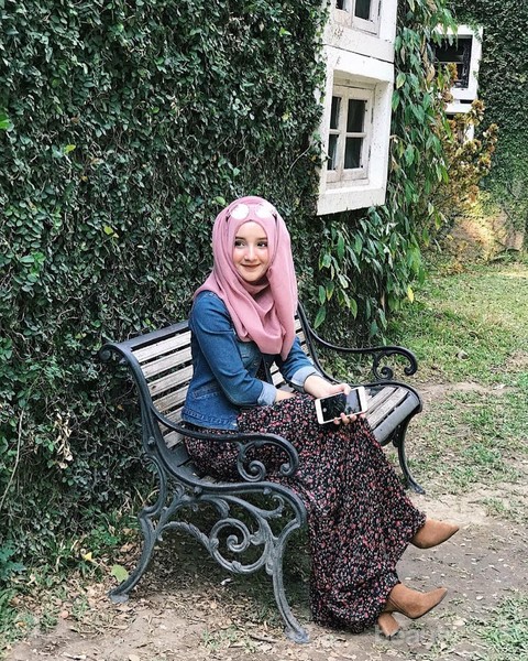 Untuk outfit menyambut musim semi, tidak ada salahnya kamu terlihat lebih ceria dengan padu padan fashion item bercorak bunga-bunga. Gaya hijab dari Ruksana Mirror yang satu ini bisa kamu contek. Perpaduan rok bunga-bunga dan outer denim terlihat sangat cantik dengan balutan hijab pashmina pink yang dipasang dengan style lilit. Apalagi dilengkapi dengan sepatu boots cantik yang digunakannya.
