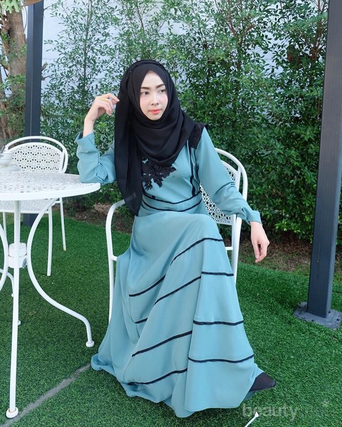Nah, kalau kamu ingin tampilan yang lebih anggun dan feminine dengan outfit dress yang simpel dan minimalis, gaya hijab dari si cantik Muneenah wajib untuk kamu intip. Pilihan perpaduan warna hitam dan turquoise yang cerah dan gelap membuat gaya Muneenah terlihat lebih manis dan sederhana. Meskipun begitu, gaya hijab yang modern dengan aksen lilit memberikan kesan berbeda pada gayanya. Ya, kan?