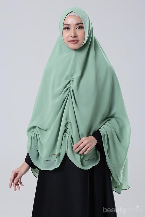 Nah, kalau untuk tampilan pesta yang santai, khimar kerut dapat menjadi pilihan yang tepat. Detail kerutan pada hijab panjang kamu akan memberi kesan tampilan yang lebih elegan dan cantik. Kamu juga dapat memilih khimar dengan detail payet atau menambahkan bros untuk membuat style syar'i kamu lebih formal.