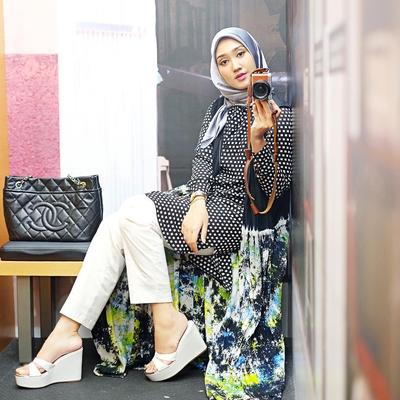Wedges simple seperti model tip toe atau strap sederhana juga bisa terlihat elegan. Sontek gaya Dian Pelangi, padankan dengan jumpsuit yang playful atau two piece celana dan tunik.