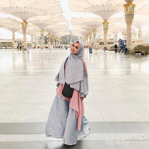 Kalau kamu ingin bergaya lebih syar'i lagi dan gaya Amelia kurang cocok untukmu, kamu bisa meniru style hijab syar'i Medina Zein yang satu ini. Tips umroh untuk bergaya syar'i seperti Medina Zein adalah kamu harus memilih dress hijab yang benar-benar longgar dan menutup tubuhmu. Begitu juga dengan hijab, kamu bisa memilih hijab panjang hingga pinggang yang benar-benar menutup bagian dada. Pilih warna-warna favoritmu dan bahan dress dari katun yang bisa membuatmu nyaman.
