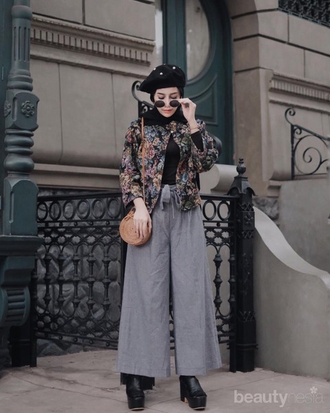 Celana kulot yang dipakai Aghnia Punjabi juga akan membuat kaki jenjangmu terlihat anggun dan manis.
